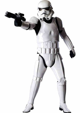 Stormtrooper - męski strój Szturmowca (kopia filmowa) Gwiezdnego Imperium. Stroje z filmu gwiezdne wojny czieszą się dużym zainteresowaniem naszych klientów.
