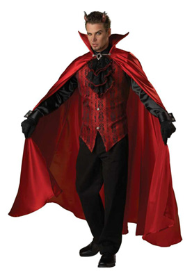 Męski strój diabła z peleryną"Dashing Devil".Atrakcyjne męskie przebranie diabła. Kostiumy diabłów cieszą się zawsze popularnością podczas imprez w halloween.