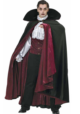 Strój wampira z długa peleryną"Książe Transylwanii".Atrakcyjne męskie przebranie wampira. Kostiumy wampirów cieszą się dużą popularnością podczas halloween.